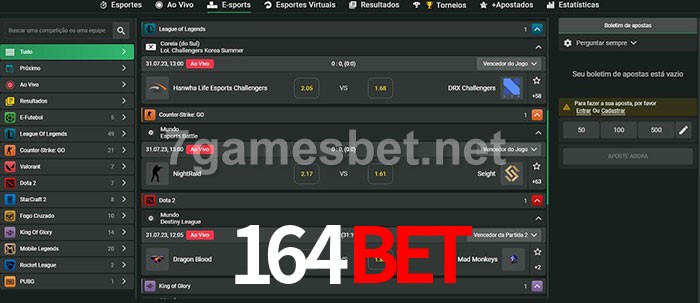 O 164bet oferece uma grande seleção de opções de apostas em e-sports com probabilidades competitivas